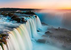 En el medio del Parque Nacional Iguazú y conformadas por más de 275 saltos de hasta 70 metros de altura diseminados en forma de media luna, las Cataratas del Iguazú son un espectáculo impresionante que usted no puede dejar de visitar. Recorriendo las pasarelas de los distintos circuitos que ofrece el parque, atravesando puentes, escalinatas y senderos colmados de vegetación, se puede disfrutar las hermosas vistas que ofrecen los saltos, para culminar el recorrido en La Garganta del Diablo. Allí, sobre un mirador que llega hasta el borde de la cascada, se encuentra un balcón que permite percibir la magnificencia de las aguas al caer. Este precipicio de 80 m junto a la formación del arco iris que se superpone, crea una escenografía sorprendente. Además de Garganta, se puede visitar otros saltos iguales de maravillosos: Bosetti, Dos Hermanas, San Martín, Adán y Eva, Tres Mosqueteros y Rivadavia.